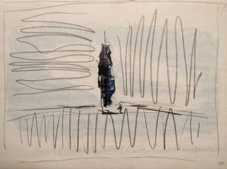 Manhattan Skyline No. 11985Pencil and photograph on paper61 × 45 cmSerie The NYC DiariesPeriod The Look Outside