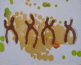 Enamel, sawdust and pencil on linen