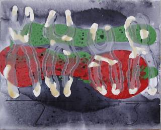 2007 Chromosomes 232007Acrylic, enamel, felt-tip pen and sand on linen50 × 40 cmSerie ChromosomesPeriod Under The Skin
