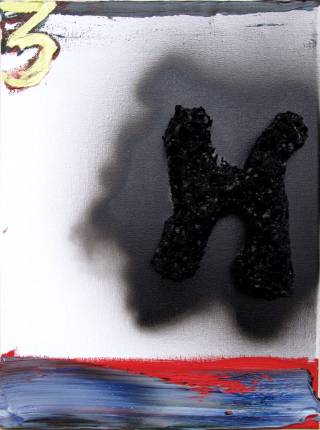 Oil, spray paint and sponge on linen