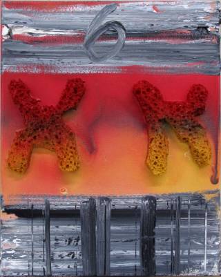 Chromosomes 2008 No. 62008Oil, spray paint and sponge on linen50 × 40 cmSerie ChromosomesPeriod Under The Skin