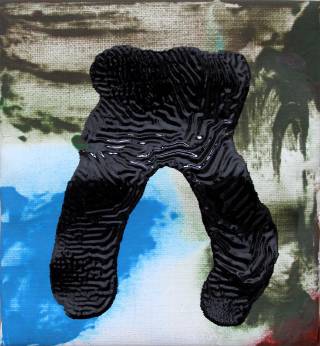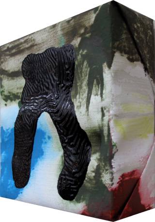 Four Black Chromosomes No. 12010Acrylic and enamel on linen and wood19 × 17 × 7 cmSerie ChromosomesPeriod Under The Skin