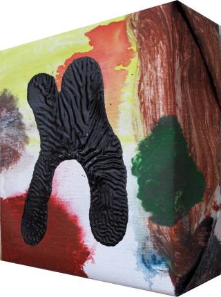 Four Black Chromosomes No. 22010Acrylic and enamel on linen and wood19 × 17 × 7 cmSerie ChromosomesPeriod Under The Skin
