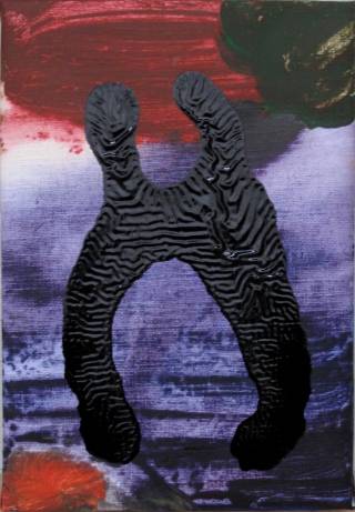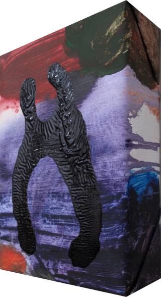 Four Black Chromosomes No. 32010Acrylic and enamel on linen and wood28 × 19 × 7 cmSerie ChromosomesPeriod Under The Skin