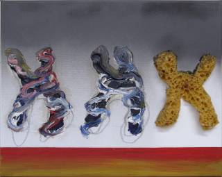 Three Chromosomes 2008 No. 22008Oil, spray paint and sponge on linen50 × 40 cmSerie ChromosomesPeriod Under The Skin
