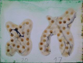 Twodripchromosomes 20172007Acrylic, enamel and varnish on linen24 × 18 cmSerie ChromosomesPeriod Under The Skin
