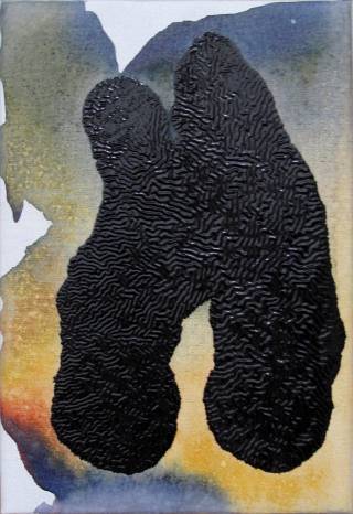 2010 Black No. 22010Ink and enamel on linen and wood28 × 19 × 7 cmSerie MiscellaneousPeriod Under The Skin